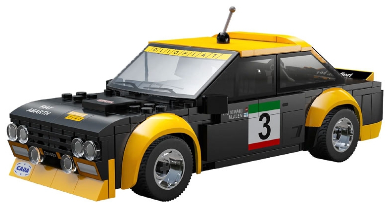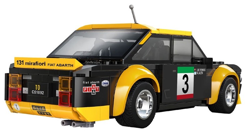 - Licensed Fiat Abarth 131 design – realistic brick recreation with fixed chassis