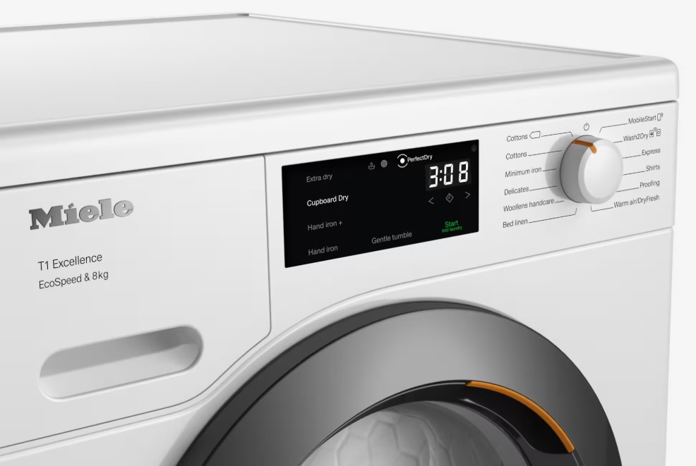 The miele tec645 wp tumble dryer delivers a premium drying experience designed to optimise efficiency, fabric care, and user control. With an 8kg drum capacity and powered by advanced heat pump technology, it reduces energy consumption while maintaining exceptional drying results. Thanks to its intelligent features and quiet, brushless ProfiEco motor, this tumble dryer is built for long-term reliability and performance in everyday family laundry routines.