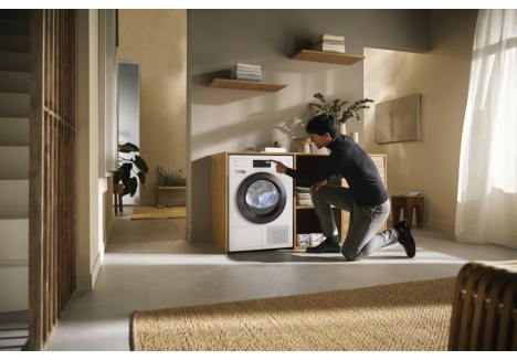 With an A+++ energy efficiency rating, this energy efficient 8kg tumble dryer is engineered to reduce both utility costs and environmental impact. The EcoDry system ensures consistent airflow by preventing blockages in the heat exchanger, leading to shorter drying times and long-term performance. The miele white heat pump dryer also features a maintenance-free heat exchanger, allowing you to enjoy energy-saving benefits throughout the appliance’s lifetime with minimal upkeep.