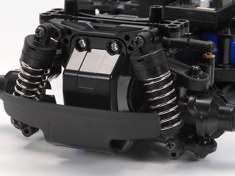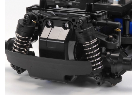 The compact, 2WD MB-01 chassis gives a choice of three types of wheelbases, and a front- or rear- wheel drive system. Without removing battery pack, motor, and R/C equipment setups from the center frame, simply change attachment directions of final gears and steering linkage to switch between front- and rear-wheel drive; low or high motor position can be chosen for rear-wheel drive cars. The 4-wheel double wishbone suspension features symmetrical structure and friction dampers. Unitized sections such as motor mount, final gears and suspension facilitate ease of assembly and effective maintenance.