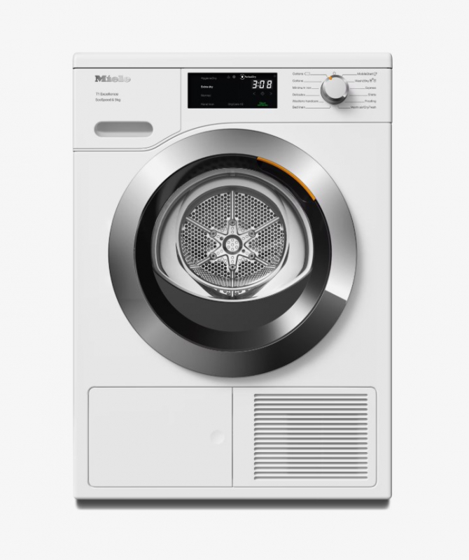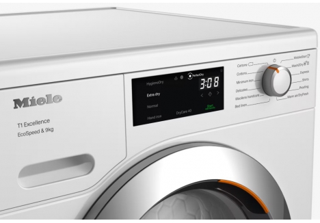 As an energy efficient miele tumble dryer, the TEH785 WP is rated A+++ and features EcoSpeed technology, which reduces full-cycle drying time by up to 20 minutes without compromising energy usage. The ProfiEco inverter motor delivers long-lasting, quiet, and reliable performance with minimal wear. A maintenance-free heat exchanger and automatic condensate drainage further reduce upkeep while improving long-term efficiency.