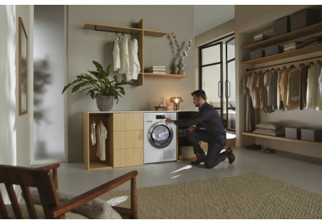 The intuitive rotary control and bright LED drum lighting make operation a breeze. The AddLoad function lets you pause the cycle and add forgotten items without hassle. For ultimate convenience, the DryCare 40 programme allows you to move items straight from the 40°C wash cycle to the dryer — no sorting required. This model is perfect for households that need both performance and flexibility in a compact footprint.