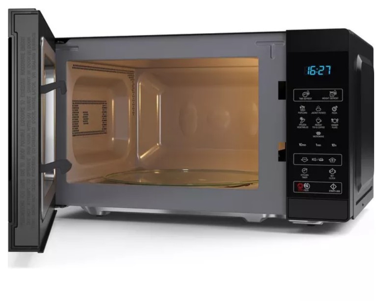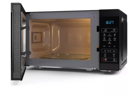 The microwave is equipped with 8 handy automatic programmes, including time and weight defrosting options, so you can heat or thaw your meals without any guesswork. The simple push-button door and clear display make this countertop microwave black finish user-friendly for all age groups. Whether you're preparing quick snacks or cooking full meals, the one-touch controls simplify your kitchen routine.