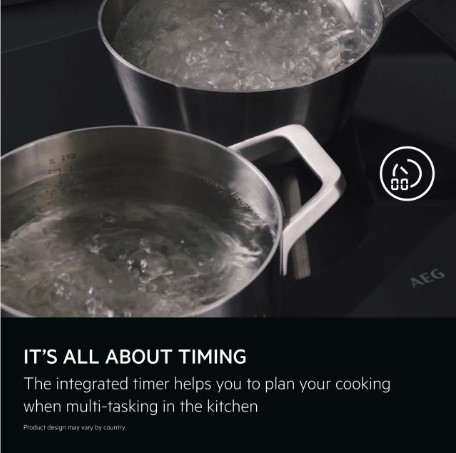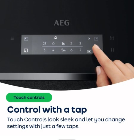 Safety is paramount with the AEG TN64IA04FB induction hob. Features include an automatic switch-off, 3-step residual heat indicators, and a child lock to prevent accidental adjustments. The frameless AEG induction hob design allows for easy cleaning and a minimalist look that complements any kitchen.