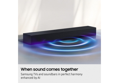 The Samsung HW-B400F/XU 2.0 Channel Bluetooth Soundbar is a compact yet powerful audio solution designed to enhance your home entertainment experience. With a built-in woofer and voice enhancement mode, this Samsung Bluetooth soundbar delivers rich, clear sound that transforms everyday viewing into immersive listening. Whether you're watching a drama, catching up on the news, or streaming music from your phone, the Samsung HW-B400F/XU ensures every sound is crisp, balanced, and impactful. Its sleek Titan Black finish and minimalist profile make it a stylish addition to any UK living room, especially where space is at a premium.
