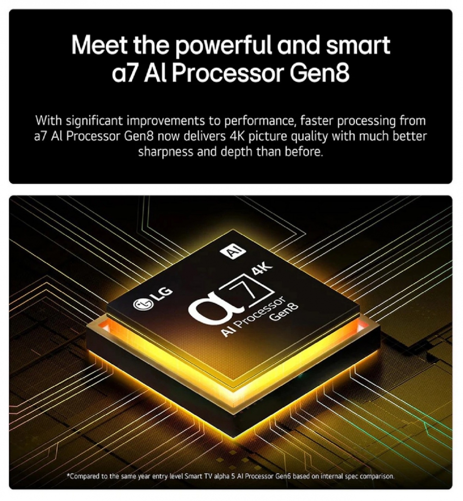 - Alpha 7 Gen 8 AI Processor – Enjoy enhanced 4K resolution with advanced upscaling and optimised content for brightness, clarity, and vivid detail.