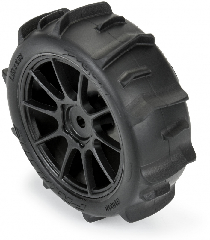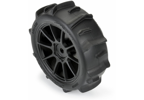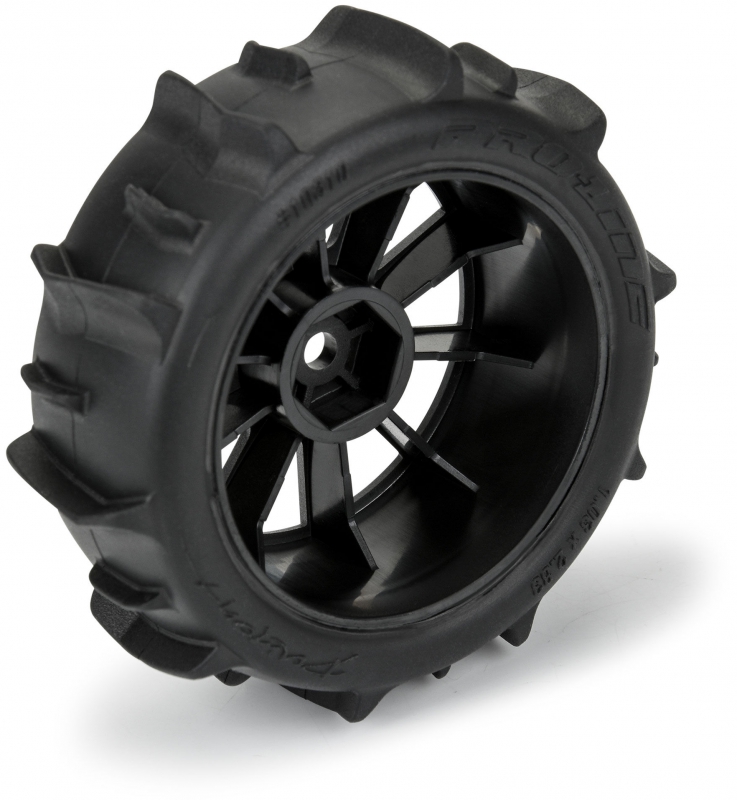 PRO1031010 | Dumont 1.9" Paddle Sand Tires Mounted on Mach-10 Black 12mm Hex Wheels (4) for ARRMA® Typhon™ GROM Front and Rear