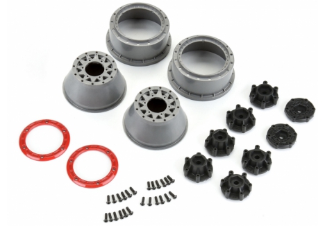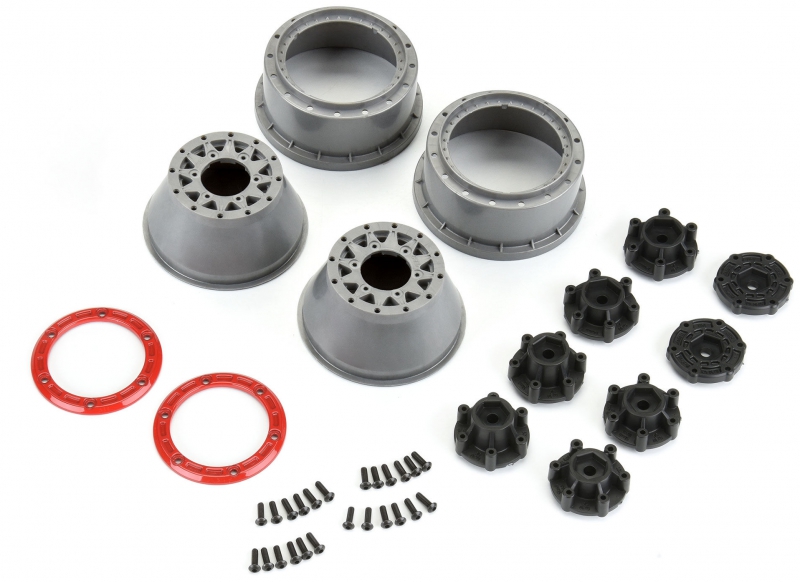 This is a pair of Special Edition Raid 2.2"/3.0" Red/Gray Bead-Loc 6x30 Removeable Hex (12mm & 14mm) SC Wheels. Short Course fans rejoice! We have combined the best features from our trusty Bead-Loc wheel design with our innovative 6x30 replaceable hex system to create the ultimate SC basher wheel!