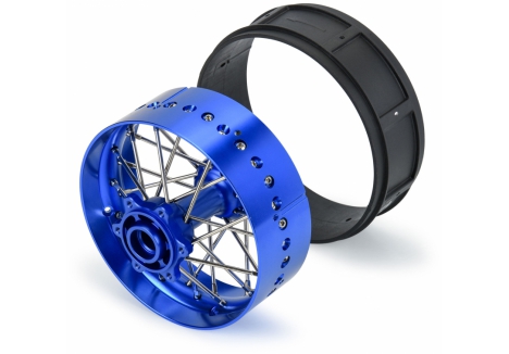 This is a Pre-Assembled Pro-Spec V2 Bead Aluminum Rear Wheel for Losi® Promoto-SM. Pro-Line is taking supermoto realism to the next level with this Pro-Spec anodized billet aluminum spoke wheel. Engineered for enthusiasts, this wheel is designed to perform in extreme environments while taking a beating.