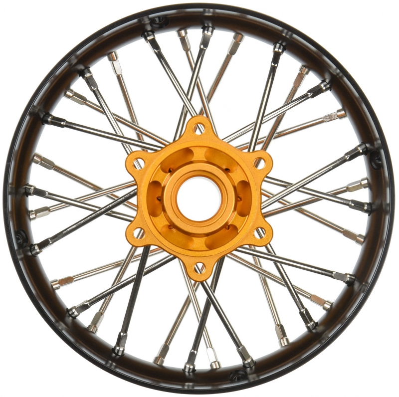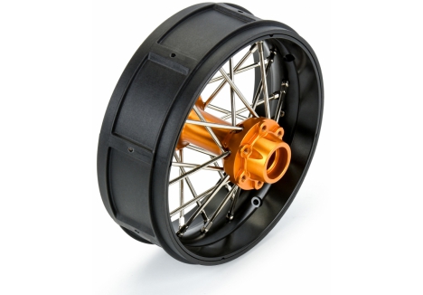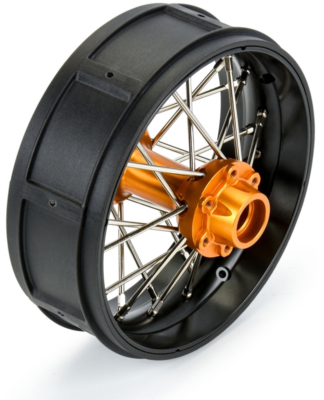 This is a Pre-Assembled Pro-Spec V2 Bead Aluminum Rear Wheel for Losi® Promoto-SM. Pro-Line is taking supermoto realism to the next level with this Pro-Spec anodized billet aluminum spoke wheel. Engineered for enthusiasts, this wheel is designed to perform in extreme environments while taking a beating.