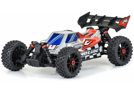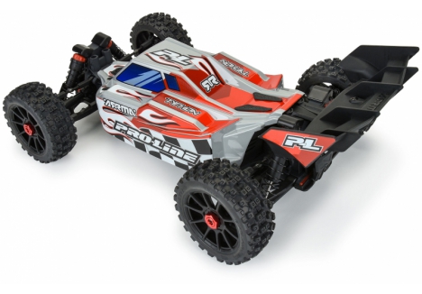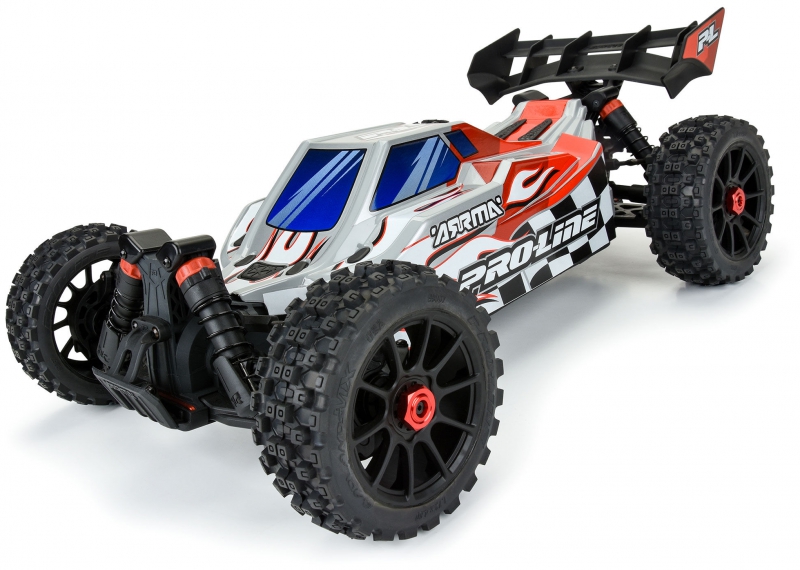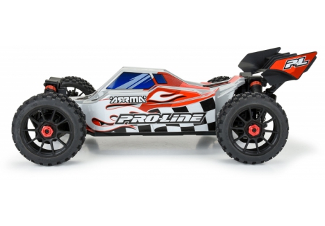 Pro-Line is bringing the latest high-performance race body to the ARRMA® Typhon™ 223S! Designed with the latest in CAD technology, the Axis features a super low-slung design with sharp lines throughout giving it an unmistakable look on the track or at your favorite bash spot. The Axis is a cab-forward design that provides enhanced steering response while the small side fins balance out the rear of the car with the ideal side-bite. The rear of the Axis body has the right amount of clearance for the motor and electronics and fits the chassis and bulkhead shape of your buggy perfectly.