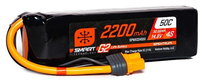 - 2 × Spektrum 14.8V 2200mAh 4S 50C Smart G2 LiPo Battery (IC3)