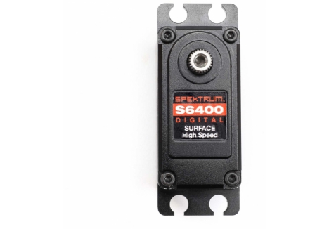 - Product Type: Spektrum P-SPMSS6400 S6400 HV servo with 266 oz-in torque, 0.06 sec speed, and 25T output spline, Spektrum P-SPMSS6400 low-profile digital servo for 1/10 scale buggies, trucks, crawlers, and RTR upgrades, Spektrum P-SPMSS6400 brushed HV surface servo with aluminum case and dual output shaft bearings, Spektrum P-SPMSS6400 with removable wire harness, 7075 anodized gear train, and 2-inch extension lead, High-speed waterproof servo for 1/10 vehicles with steel internal gears and aluminum mounting tabs