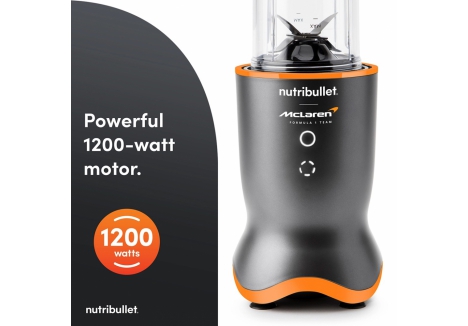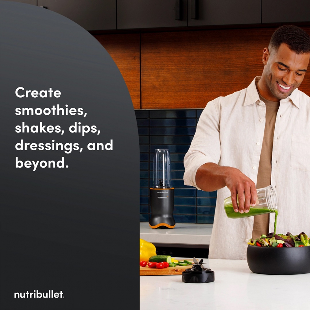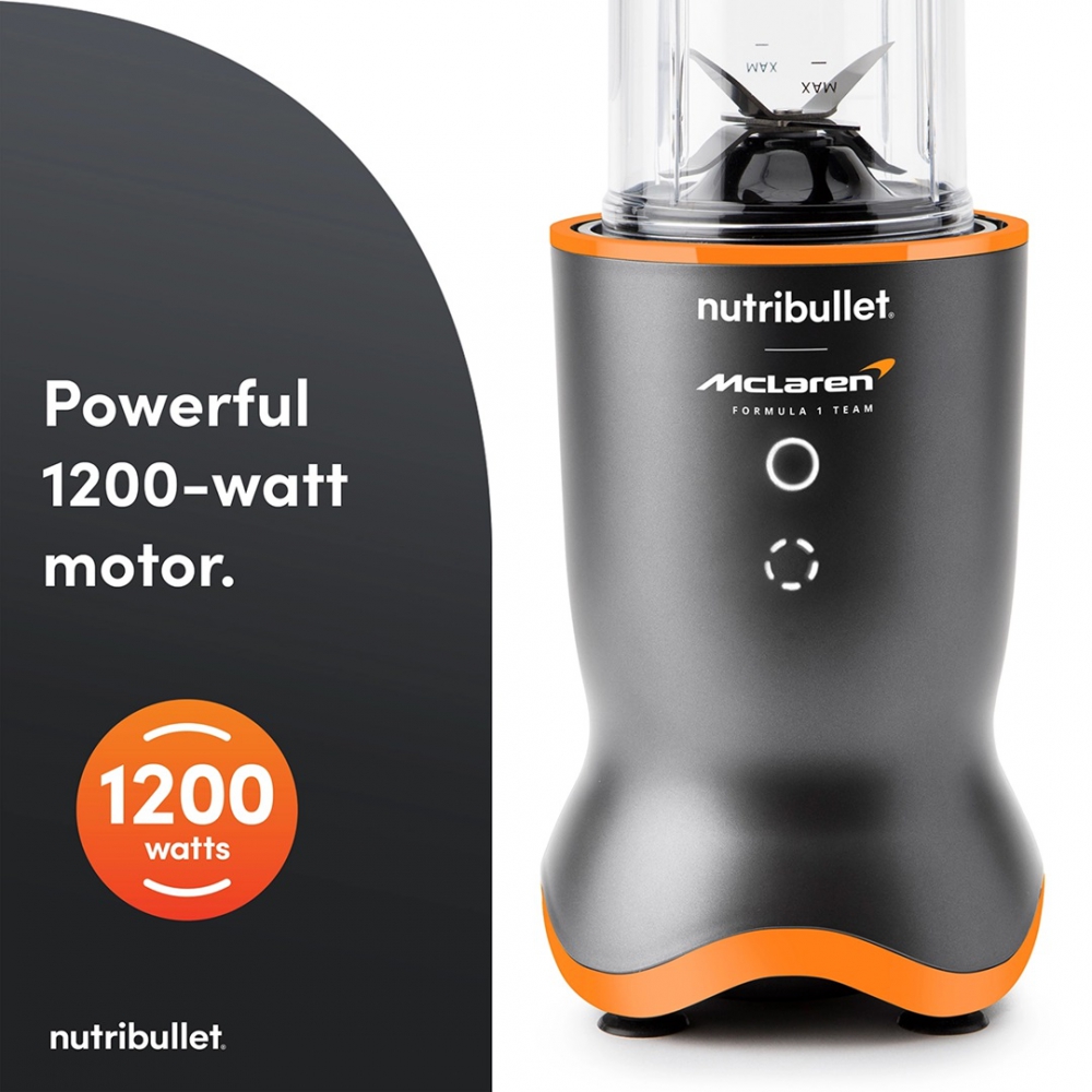 The Nutribullet x McLaren 2776 Blender is a high-performance personal blending system that merges cutting-edge design with powerful functionality. Developed in collaboration with McLaren Racing, the Nutribullet Ultra 1200 Blender delivers rapid blending performance, reduced noise output, and a sleek, compact profile that elevates any kitchen setup. With a 1200-watt motor at its core, the Nutribullet 1200W Personal Blender is engineered to handle tough ingredients with ease, transforming whole fruits, vegetables, seeds, and ice into smooth, nutrient-rich blends in just 30 seconds. This model is ideal for users who value speed, precision, and quiet operation in their daily routine.