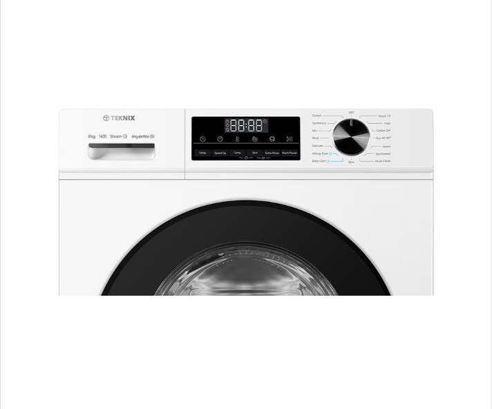 Engineered with an efficient inverter motor and backed by a three-year warranty (registration required), this appliance offers dependable performance and peace of mind. With its robust construction and consistent energy-efficient operation, the Teknix washing machine is built to support your household for years. Buy Teknix TK3W814XW 8kg 1400 spin washing machine white and enjoy a smart, durable, and efficient laundry experience.