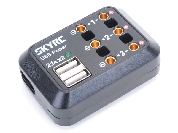 The SkyRC SK-600114-02 DC power distributor provides three convenient DC output ports (compatible with banana plugs and alligator clips), making it easy to power chargers, motors, or accessories simultaneously. Additionally, two USB ports (5V/2.1A each) allow for fast charging of smartphones, tablets, LED lights, or other USB devices—perfect for keeping your gear topped up while at the track or in the field.