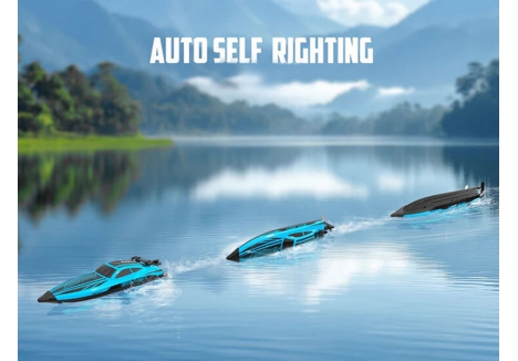 Its smart self-righting hull design automatically flips the boat upright if capsized, so you can stay in control and on course. The integrated waterproof ESC provides full forward and reverse functions for agile handling, making obstacle navigation simple and intuitive. Twin 7.4V LiPo batteries deliver long run times of up to 30 minutes, giving you more time on the water with every charge.