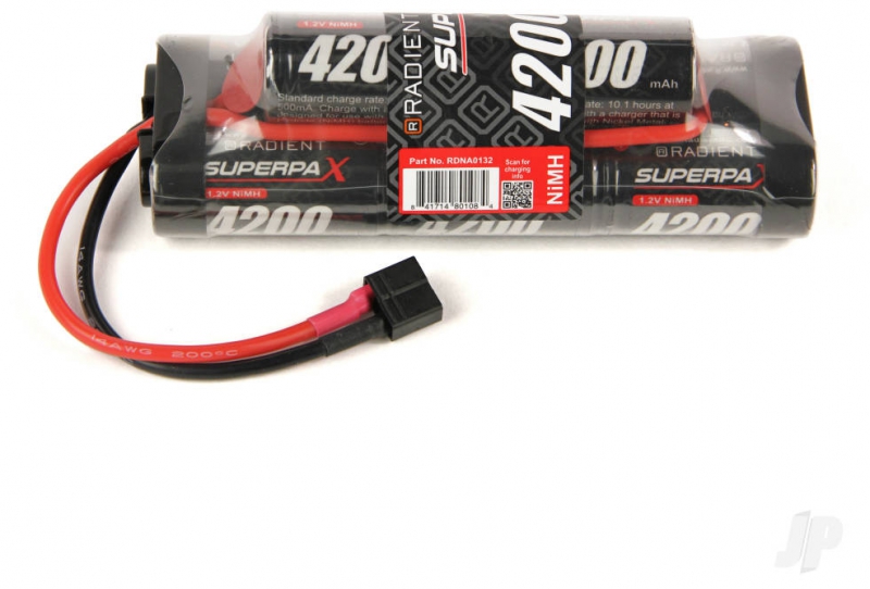 Sporting a large 4200mAh capacity the archetypal 8-cell, NiMH, SC 6-2, hump transmitter pack joins the extensive Radient battery range. It matters not whether you fly, sail or drive, batteries don't last forever so maybe it's time to upgrade before your tired old pack lets you down? That could be a costly oversight!