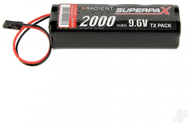 Sporting an useful 2000mAh capacity the archetypal 8-cell, NiMH, AA square transmitter pack joins the extensive Radient battery range. It matters not whether you fly, sail or drive, batteries don't last forever so maybe it's time to upgrade before your tired old pack lets you down? That could be a costly oversight.