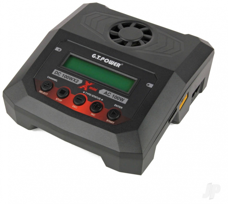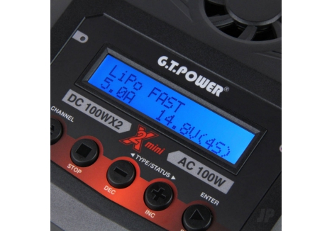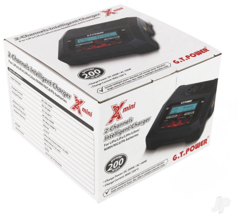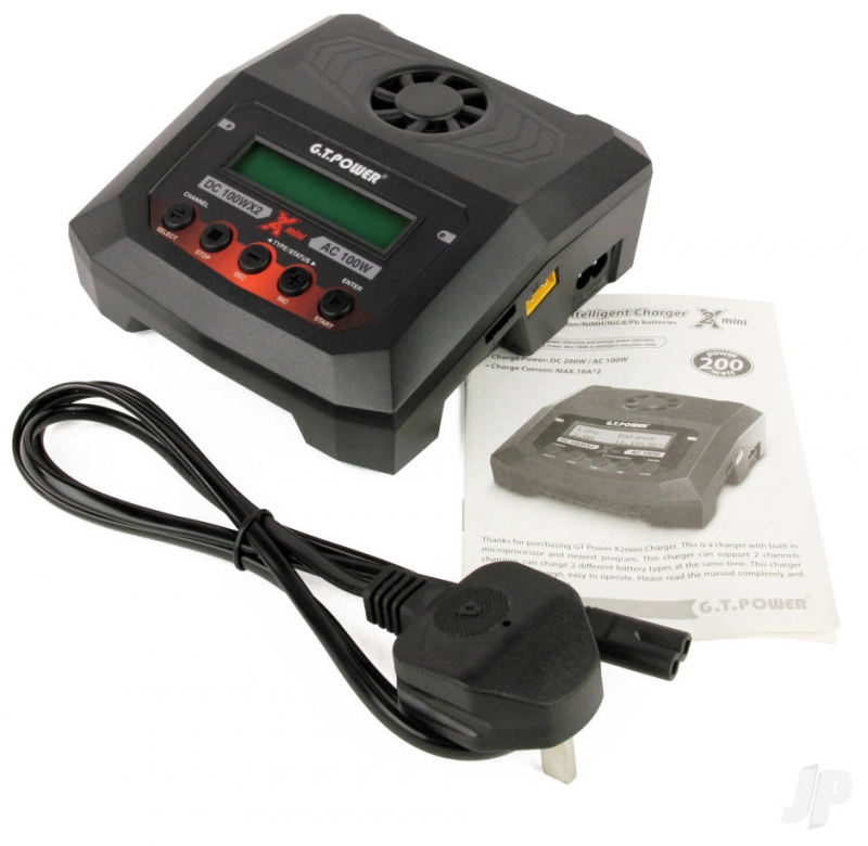 Charger manufacturers come and charger manufacturers go, however G.T. Power, it seems, is here to stay. Widely regarded as providing the best quality battery charging and care devices available in the RC world its products have made many friends over the years and, indeed, the X2 Mini is set to follow the trend. Offering an impressive 200W of charge power split between two independent 100W channels, the X2 is able to charge batteries with a much higher amperage in far less time. And, of course, with twin outputs, two batteries can be charged at the same time, using completely separate charge or discharge routines. With a choice of mains or 19-26V DC input, the X2 is ideal for use both at home and at the field, track or lake. Moreover the backlit LCD makes it simple to select the charge parameters while also monitoring a battery's status in any light. Compatible with today's numerous cell technologies this tidy unit is not only powerful and compact but convenient and versatile too, allowing it to travel with you to satisfy any number of multi-chemistry charging tasks.