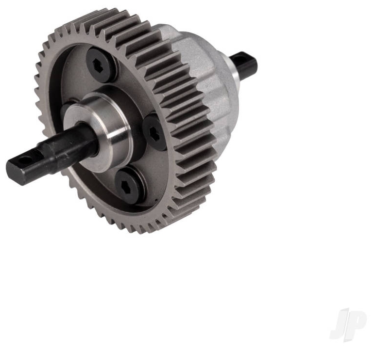 The high-performance centre differential absorbs driveline shocks to improve durability and distribute power evenly for mind-bending acceleration. The finned aluminium housing helps dissipate heat with a tough 44-tooth, mod 1 (1.0 metric pitch) steel spur gear for maximum durability. The sealed differential comes pre-loaded with heavy 20-million weight silicone oil to help prevent unloading and ballooning of the front tyres.