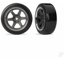 1.9" front hard-compound drift tyres provide the perfect combination of durability and breakaway potential for refined drift control on abrasive surfaces like concrete and asphalt. Hard-compound drift tyres come pre-mounted to 6-spoke graphite gray tuner wheels with a chrome rim. Sold as a pair.