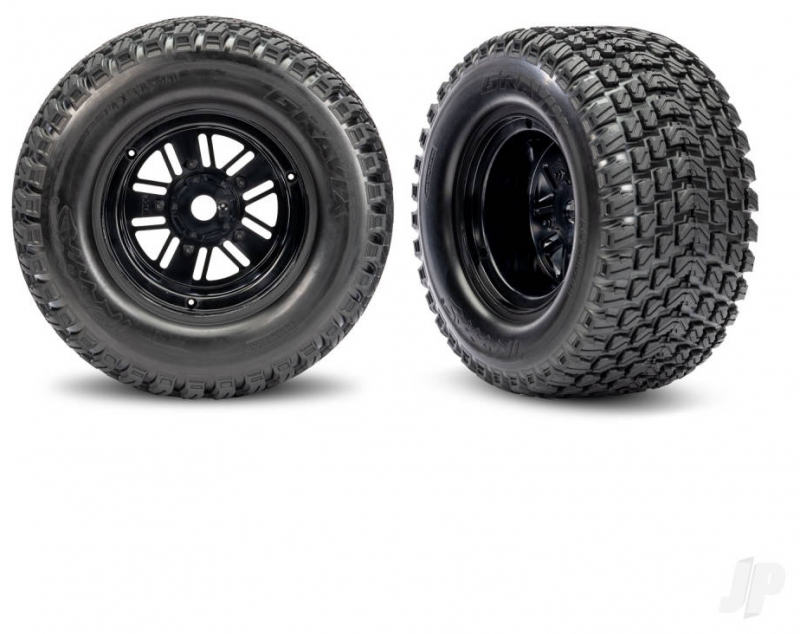 Low-profile Gravix race tyres are built to run hard on pavement or in the wild. The directional tread pattern runs quieter than traditional off-road tyres with excellent traction and a thick centre carcass to prevent ballooning at high speed. The tyres come pre-assembled and glued to dual-profile black Sand Car wheels with foam inserts. Sold as a left and right pair. Use TRX10948-series beadlock rings to complete your wheels.