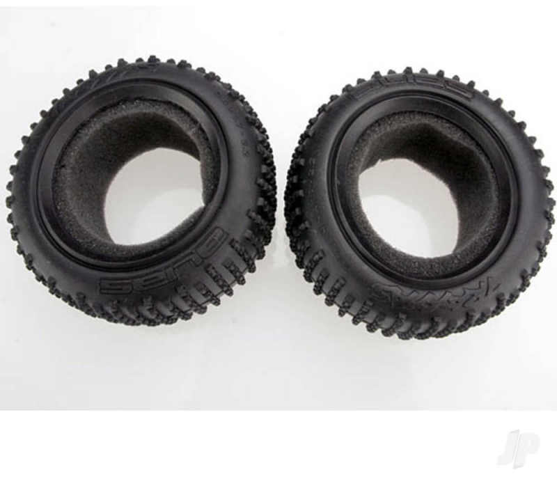 Alias 2.2in soft-compound rear step-pin Tyres provide excellent traction in dirt and other loose surfaces. Includes foam inserts.