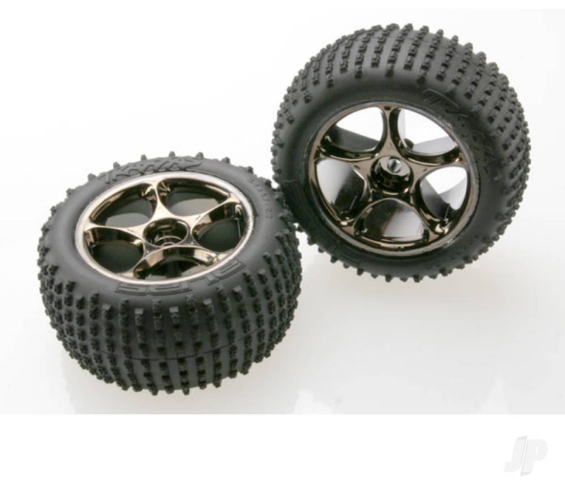 Traxxas Wheels & Tyres, assembled (Tracer 2.2" black chrome wheels, Alias 2.2" Tyres) (2) (Bandit rear, medium compound with foam inserts) (TSM rated) TRX2470A
