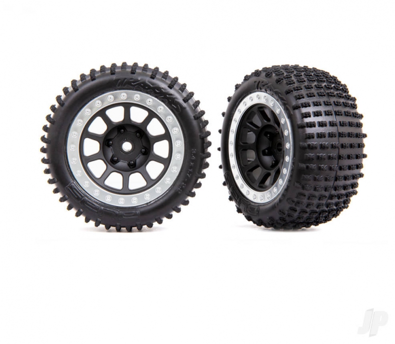 Traxxas Wheels & Tyres, assembled (2.2" black, satin chrome beadlock wheels, Alias 2.2" Tyres) (2) (Bandit rear, medium compound with foam inserts) TRX2470G