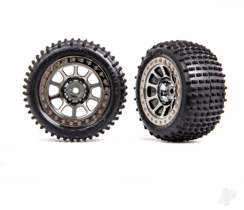 Traxxas Wheels & Tyres, assembled (2.2" black chrome wheels, Alias 2.2" Tyres) (2) (Bandit rear, medium compound with foam inserts) TRX2470T