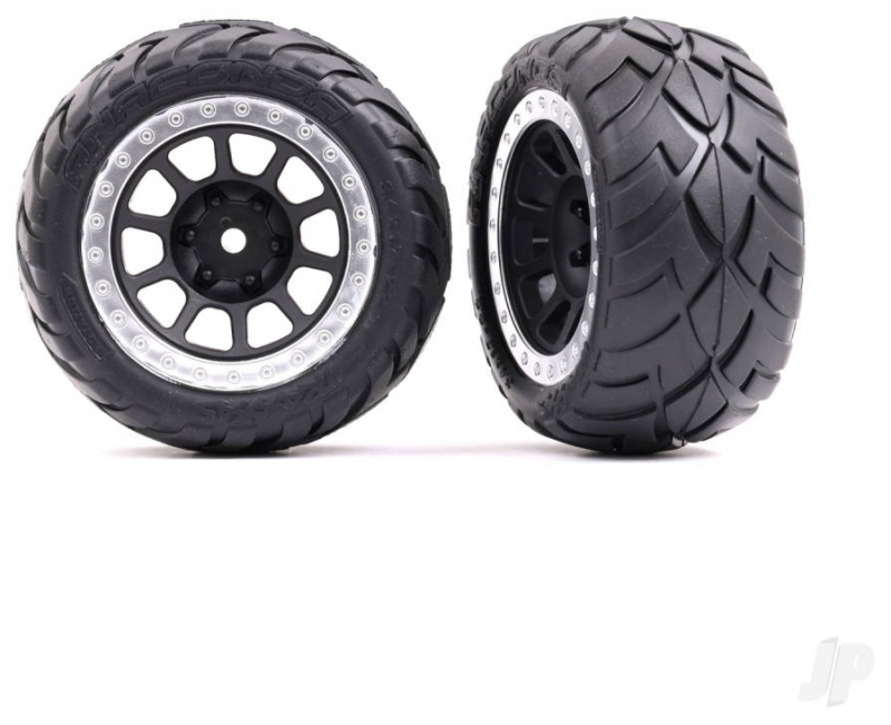 Traxxas Wheels & Tyres, Assembled (2.2in Graphite Grey, Satin Chrome beadlock wheels, Anaconda 2.2in Tyres with foam inserts) (2) (Bandit rear) TRX2478G