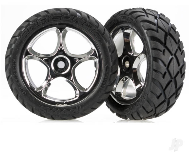 Anaconda 2.2in performance street Tyres feature a unique rubber compound which provides incredible traction and long tread life. They come pre-glued to Tracer 2.2in wheels. Available in mirror chrome and black chrome finish.
