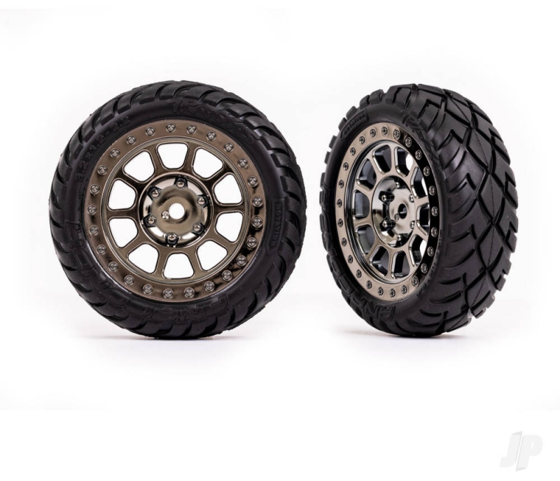 Traxxas Wheels & Tyres, Assembled (2.2in Black Chrome wheels, Anaconda 2.2in Tyres with foam inserts) (2) (Bandit front) TRX2479T