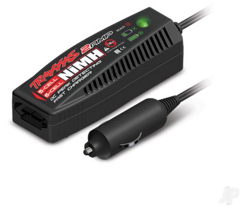 The 2-amp NiMH fast charger uses a 12-volt DC power outlet for universal high-output charging. The charger is optimised for charging 5-7-cell (6 volt - 8.4 volt) Traxxas iD Power Cell NiMH batteries. Peak-detection circuitry makes sure the battery receives a full charge every time. The status LED flashes green to indicate when charging is in progress, then turns solid green when charging is complete for foolproof charging, peak performance, and maximum runtime.