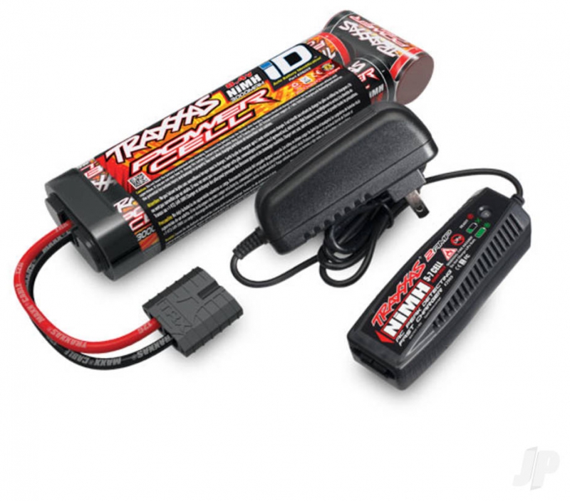Battery & Charger Completer Pack includes 1x 2A AC NiMH Charger TRX2969T and 1x NiMH 7-cell 3000mAh 8.4V Flat Battery TRX2923X