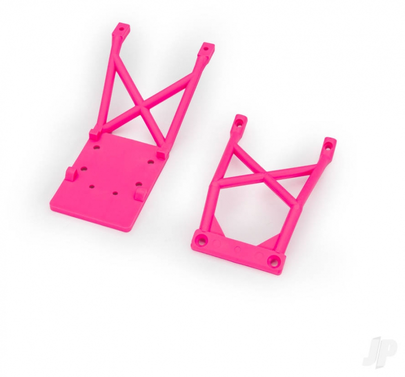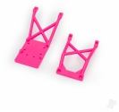 Pink front and rear skid plates for Traxxas 2WD Stampede models.