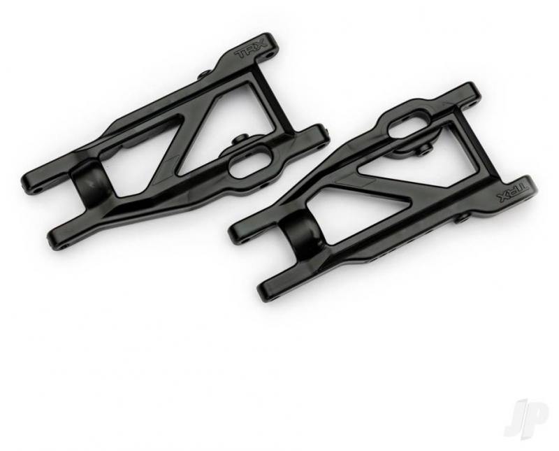Heavy-duty suspension arms for Stampede, Rustler, and more feature our latest proprietary composite material. Traxxas designed this composite specifically for high loads and hard landings with just the right amount of flex to resist breakingeven in cold weather. Whether youre sending it at the skate park, or preparing for the next speed run, these arms were built for extreme punishment. These arms fit the rear position of 2WD models or front and rear positions of 4X4 models.