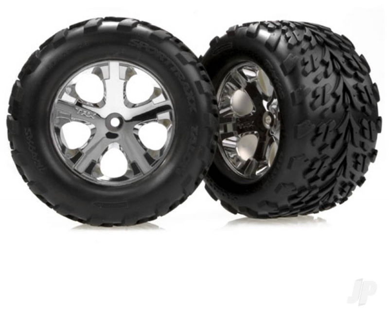 Talon assembled and glued 2.8in tyre sets make it easy to maintain peak performance. Talon Tyres are proven to provide injust-rightin grip and handling on a wide variety of surfaces. Soft rubber compound with foam inserts extend grip. The All-Star 5-spoke wheels combine structural strength and futuristic styling. The horizontal bead helps to hold the tyre, reducing stress placed on the glue joint by tyre expansion. The chrome finish is tough for long-lasting good looks. Available in mirror chrome and black chrome finishes.