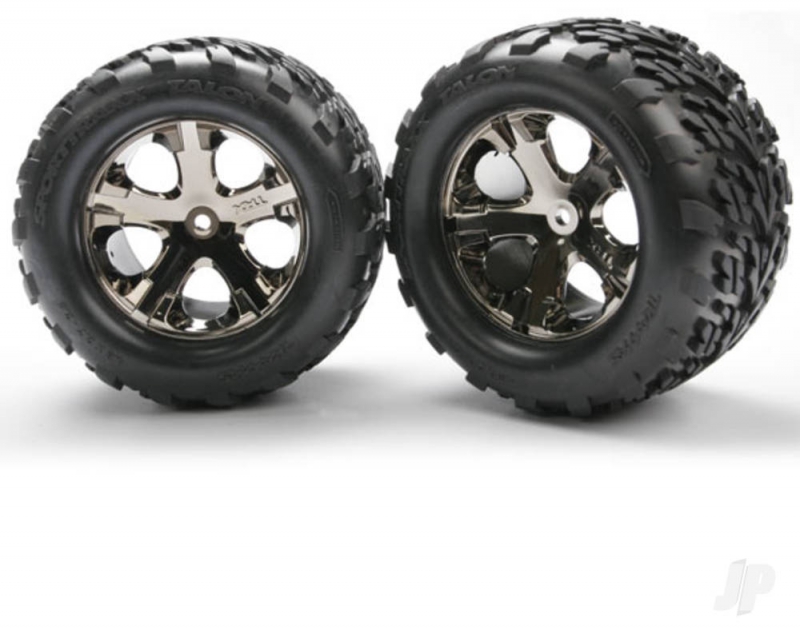 Talon assembled and glued 2.8in tyre sets make it easy to maintain peak performance. Talon Tyres are proven to provide injust-rightin grip and handling on a wide variety of surfaces. Soft rubber compound with foam inserts extend grip. The All-Star 5-spoke wheels combine structural strength and futuristic styling. The horizontal bead helps to hold the tyre, reducing stress placed on the glue joint by tyre expansion. The chrome finish is tough for long-lasting good looks. Available in mirror chrome and black chrome finishes.
