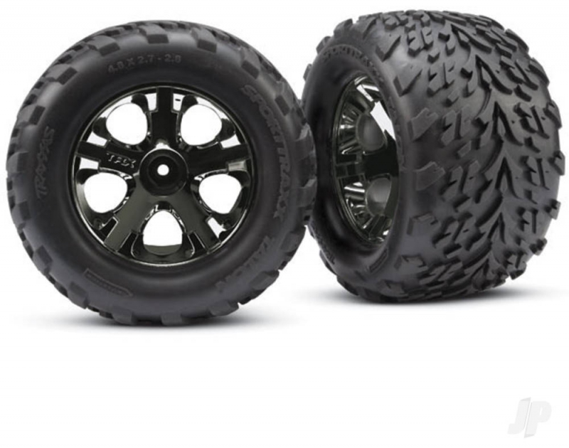 Talon assembled and glued 2.8in tyre sets make it easy to maintain peak performance. Talon Tyres are proven to provide injust-rightin grip and handling on a wide variety of surfaces. Soft rubber compound with foam inserts extend grip. The All-Star 5-spoke wheels combine structural strength and futuristic styling. The horizontal bead helps to hold the tyre, reducing stress placed on the glue joint by tyre expansion. The chrome finish is tough for long-lasting good looks. Available in mirror chrome and black chrome finishes.