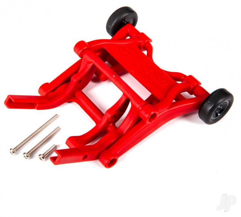 The unique patented Traxxas adjustable wheelie bar features four position adjustment, plus it quickly and easily installs onto the rear of any electric Slash, Rustler, Stampede, and Bandit. The wheelie bar mount is constructed of durable composite nylon and it offers an extra level of protection for the motor and transmission case. Existing wheelie bar accessories such as the aluminium wheelie bar wheels with rubber Tyres (part #5186, 5186A) or the separate rubber Tyres (part #5185) are also compatible for custom looks and increased performance.
