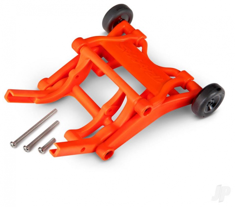 The unique patented Traxxas adjustable wheelie bar features four position adjustment, plus it quickly and easily installs onto the rear of any electric Slash, Rustler, Stampede, and Bandit. The wheelie bar mount is constructed of durable composite nylon and it offers an extra level of protection for the motor and transmission case. Existing wheelie bar accessories such as the aluminium wheelie bar wheels with rubber Tyres (part #5186, 5186A) or the separate rubber Tyres (part #5185) are also compatible for custom looks and increased performance.