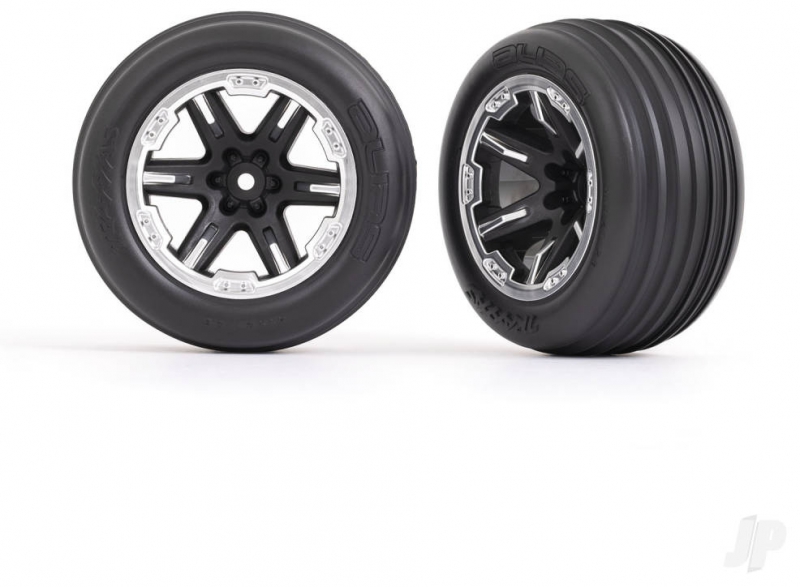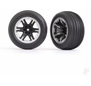 Traxxas Wheels & Tyres, Assembled, Glued (2.8in) (RXT Black & Satin wheels, ribbed Tyres, foam inserts) (electric front) (2 pcs) TRX3771X