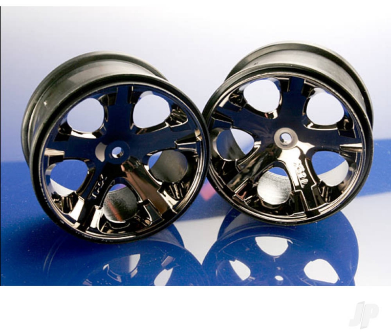 All-Star wheels redefine looks and convention by combining structural strength and futuristic stylings. The state-of-the-art design is available with a brilliant mirror-chrome or black-chrome face and a natural nylon bead for fast, easy tyre gluing. The horizontal bead helps grab the tyre, reducing the stress placed on the glue joint by tyre expansion.