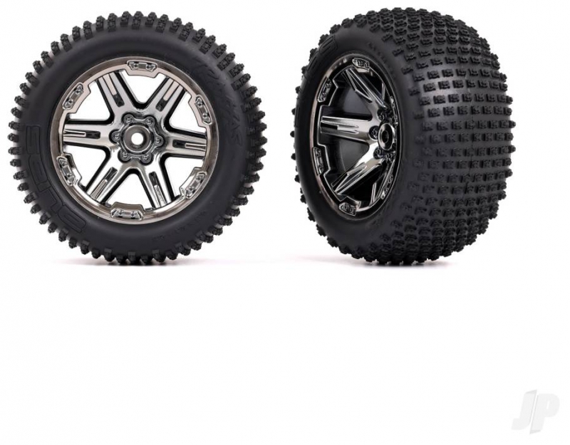 Traxxas Wheels & Tyres, Assembled, Glued (2.8in) (RXT Black Chrome wheels, Alias Tyres, foam inserts) (2WD electric rear) (2 pcs) (TSM rated) TRX3772R