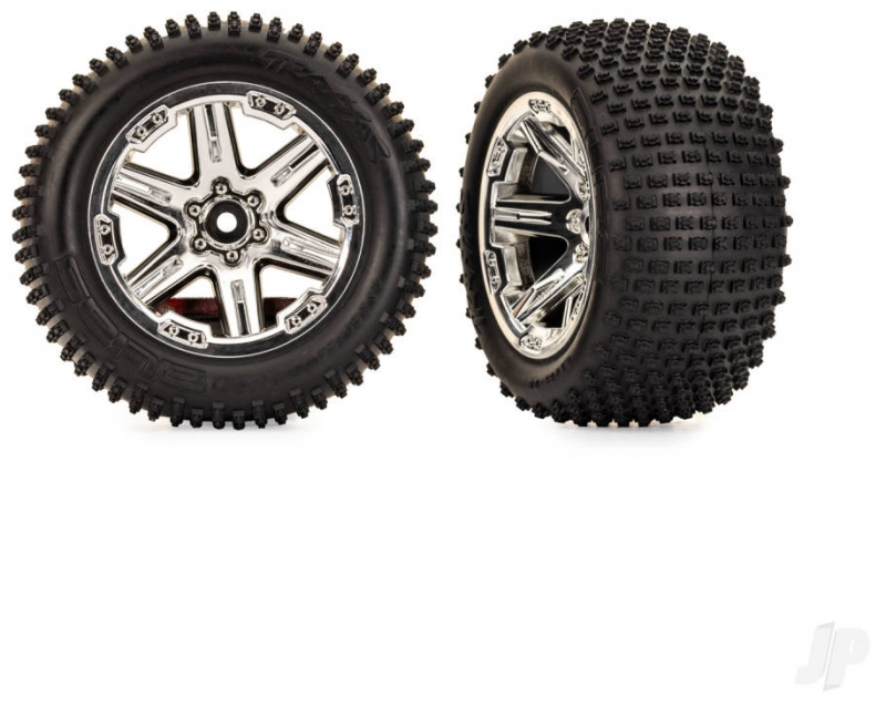 Alias step-pin tyres provide excellent traction in dirt and other loose surfaces. The tyres come mounted with foam inserts and pre-glued to 2.8" chrome RXT wheels for no-hassle, out-of-the-box bolt-on installation. TSM-rated for high-speed applications.