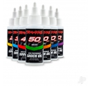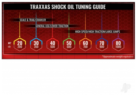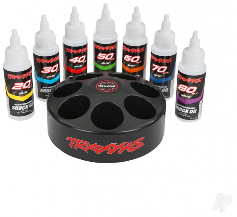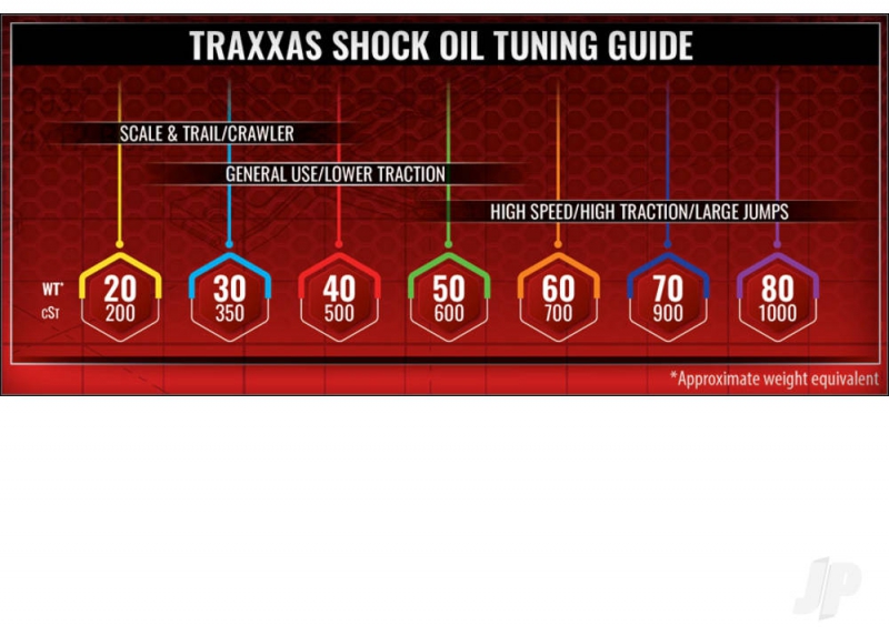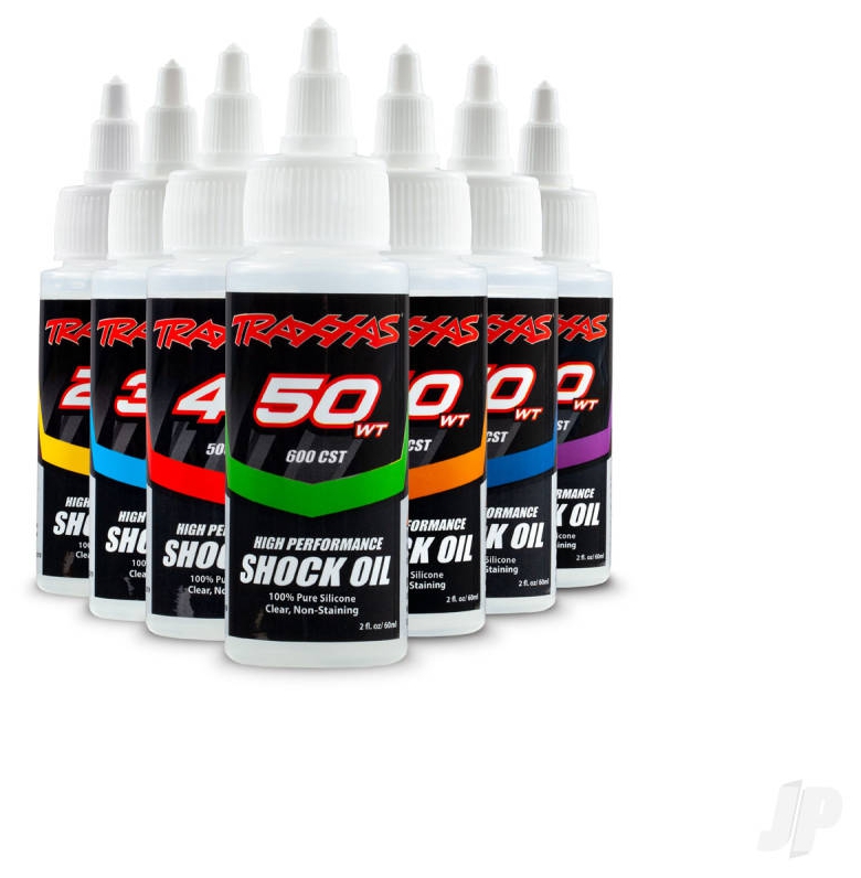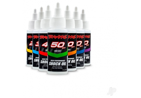 Traxxas premium silicone shock oil is the perfect solution for all your RC needs. Available in seven weights, this 100% pure silicone oil allows precise vehicle suspension tuning for maximum performance, no matter where you drive. The precision-pour, twist-nozzle cap makes it quick and easy to fill shock bodies, without all the mess. The large 2 fl.oz bottle size is enough to fill all four shocks on most models. cSt viscosity specification ensures consistent performance with every bottle.