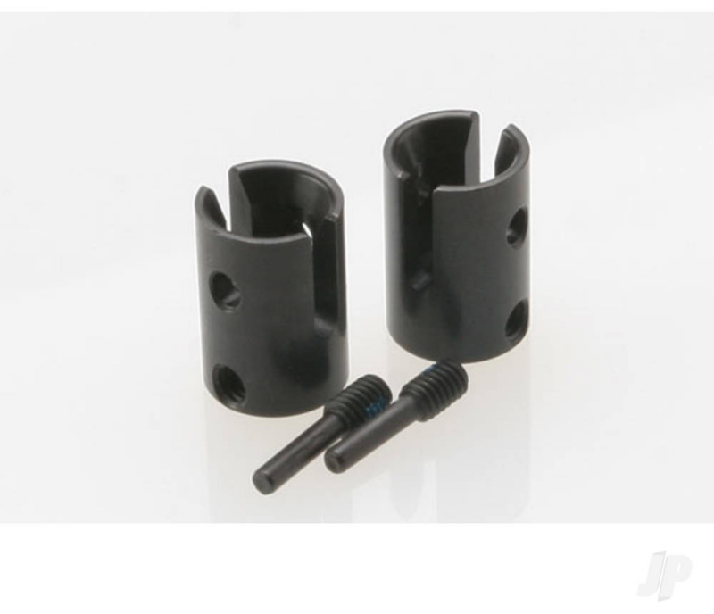 These rear drive cups are engineered exclusively for use with the combination of Traxxas steel constant-velocity driveshafts (#5451R) and the adjustable wheelbase rear suspension arm set (#5333R) on Revo. These specially designed drive cups help keep the shafts securely in place throughout the huge range of suspension movement and extreme driveshaft angles allowed by the adjustable wheelbase suspension arms. Note: These drive cups should not be used with standard wheelbase rear suspension arms.