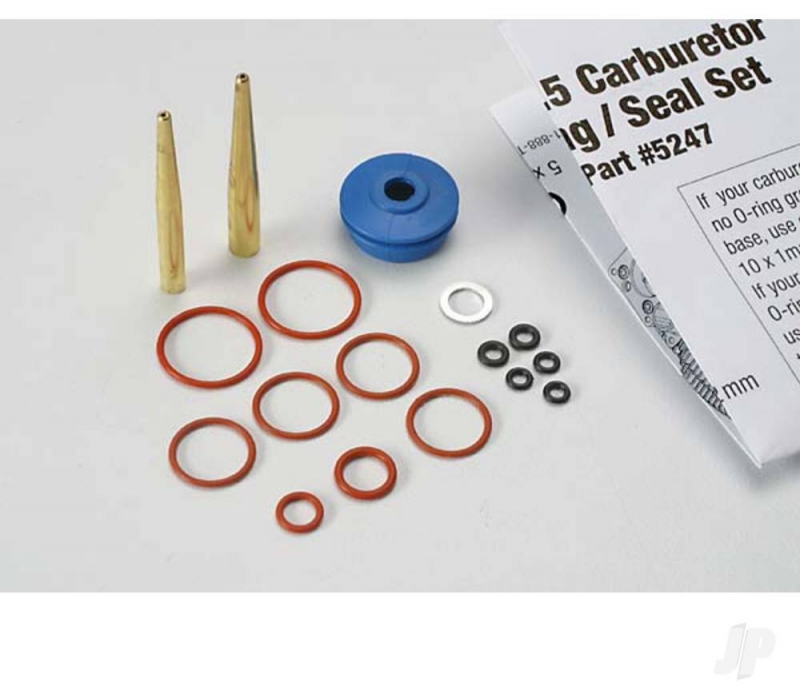O-ring and seal set, carburettor/ O-rings: 2x1mm (3), 10x1mm (4), 2.5x1.15mm (2), 6.2x1.2mm (1)/ 5x.9mm O-ring installation tool/ 5.3x7.8x.6mm crush washer (2)/ carburettor dust boot (1) (TRX 2.5, 2.5R)